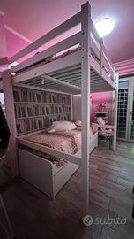 soppalco una piazza e mezzo sotto un lettino con un altro lettino estraibile con due cassetti