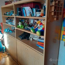 cameretta bambini con armadio e libreria più letto