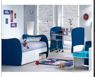 Cameretta completa che da lettino per neonato con fasciatoio, ripiani e cassettone si trasforma in una bellissima cameretta per ragazzi con letto 1 piazza con cassettone, scrivania e poltroncina. Anche l'armadio è molto capiente. L'azienda produttrice si trova in Francia, prodotto di alta qualità e in condizioni quasi perfette. Per maggiori informazioni non esitate a contattarmi anche telefonicamente.