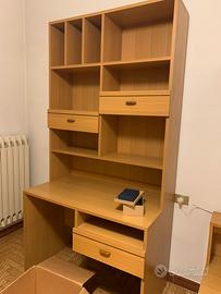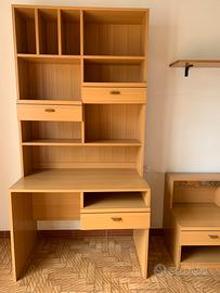 Cameretta composta da letto H 216 cm - P 86 cm, armadio H 200 cm -P 59 cm - L 200 cm, mobile scrivania H 200 cm - P 59 cm - L 100 cm, comodino H 67 cm - P 49 cm - L 50 cm, 2 mensole L 96 cm - P 25 cm