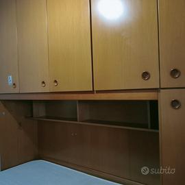 cameretta ponte in legno. Completa di comodino tre cassetti e scrivania. La cameretta è già smontata.