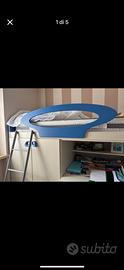 Vendo caneretta bambino in buonissimo stato compresa di dighe scale e cubo scala a contenitore con scrivania inergarata e armadio molto ampio e sponda unico difetto sono i caseetti che devo eseere sistemati