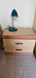 cameretta composta da comodino, cassettiera, scrivania, libreria ad angolo con cassettoni e armadio guardaroba