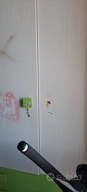armadio 6 anteriore con cassettiera comodino letto una piazza con testata materasso nuovo rete a doghe...letto materasso come nuovi. l'armadio e da sistemare come pomelli di apertura e volendo riverniciare...