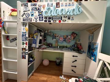 Cameretta con letto a soppalco e scrivania, armadio e cassettiera, full optional, ritiro a carico dell’acquirente.