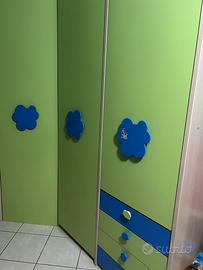 Vendo mobili per una cameretta da bambino: armadio angolare,mensole,mobile sospeso e letto con un secondo estraibile.