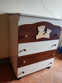 Vendo cameretta per bambino usata ma in buono stato. La cameretta è composta da : lettino con spondine + casetto materasso mobiletto 3 cassetti bajour lampadario Spese trasporto a carico acquirente