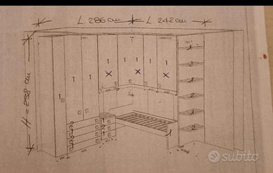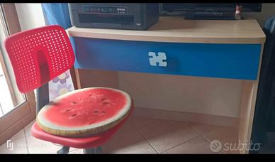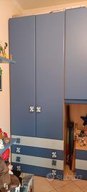 Cameretta bambino in ottimo stato usata solo per arredare una stanza, mai usata. Colore faggio e azzurro avio.