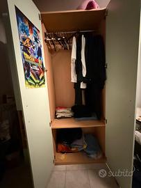 Vendo cameretta usata composta da : Scrivania come in foto Armadione 3 ante Letto e materasso Comodino Cassettiera Mensole varie In buone condizioni Smontaggio e trasporto a carico dell’acquirente Prezzo trattabile
