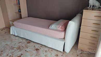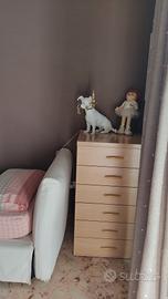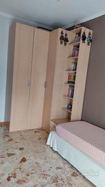 vendo cameretta in frassino composta da armadio ad angolo con libreria e due cassetti sottostanti, cassettiera a sei cassetti e letto sfoderabile senza materasso e cuscino.