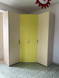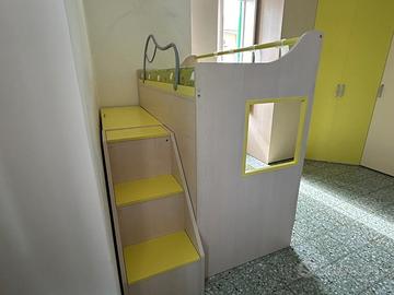 Vendo cameretta Moretticompact con armadio formato da cabina armadio più due ante laterali; letto una piazza a ponte con 4 cassetti compreso di un materasso in ottime condizioni, sponda da letto e vano scala formato da 3 cassetti contenitori piccoli e 1 grande