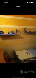 Cameretta composta da armadio di 2 mt con libreria di 50 cm annessa, letto singolo con comodino, scrivania con cassettiera e mensole.
