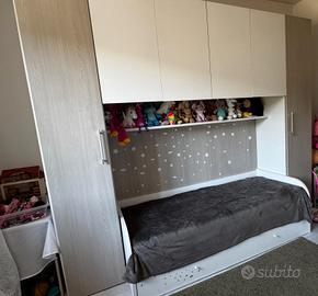 Armadietti laterali e pensile,secondo letto e mensola.