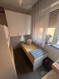 Cameretta con letto a castello, armadio a ponte e letto singolo, camera gia' smontata completa di materassi.