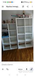 Librerie/Contenitori a Giorno: Due ampie librerie a cubi bianche offrono ulteriore spazio per libri, giochi e contenitori, aiutando a mantenere l'ordine.