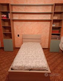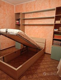 letto contenitore con fondo 90x200 due colonne libreria e 5 mensole