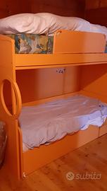 cameretta berloni, guardarobba angolare, letto a castello con 3 letti, di cui 1 ribaltabile, con relativi materassi , 2 cassettiere, 2 scrivanie, 2 mensole. Trasporto a carico e a cura dell'acquirente.