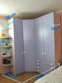 Cameretta con mobile letto-armadio 200 x 90 + armadio con cabina 200 X 200 profondita' 56cm vedi foto. Smontaggio e trasporto a carico di chi acquista.