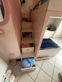 Offerta interessante! La cameretta è bianca e rosa …è molto carina e funzionale. I letti con doghe ortopediche sono ideali per garantire un buon riposo. Il terzo letto è estraibile. La scala ha 2 comodi cassetti molto utili. L'inclusione dei tre materassi è un'ottima aggiunta. Vendo per passaggio a camera da ragazza. Chi è interessato alle misure mi scriva in privato. Possibilità di visionarla dal vivo.