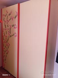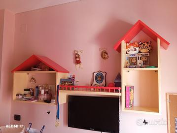 Cameretta realizzata da artigiano locale, armadio largo due metri ad ante scorrevoli, letto una piazza e mezza con doghe e cassettone, altro letto singolo nel soppalco con scala a contenitore, completa di mensole e scrivania, tutto in perfettissime condizioni.