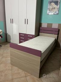 Armadio 4 ante, comodino ,scrivania,2 mensole,letto,materasso doghe in legno. Letto singolo. CONSEGNA E TRASPORTO A CARICO DEL DESTINATARIO.