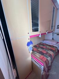 Cameretta bimba panna bianca e rosa 282x262 con letto a cassetto scrivania e sedia abinati