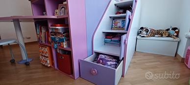 Inoltre, come visibile dalle immagini, sono presenti dei capienti cassettoni nella scala che permette un comodo accesso al letto di sopra che è compreso di sbarra. Tra le foto dell'annuncio è presente anche un disegno con tutte le misure, ma preghiamo di riprenderle al momento della visione, in modo da non ricorrere in malintesi.