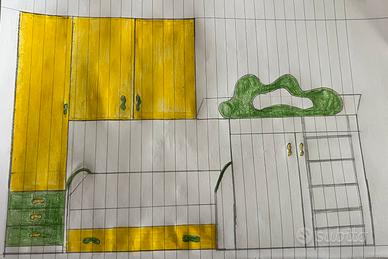 Vendo cameretta in buone condizioni, come da foto progetto, completa di cassettone letto che al momento abbiamo tolto per problemi di spazio, cosi come l armadio con cassetti. Vendo per problemi di spazio