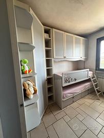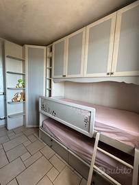 Vendo cameretta in buone condizioni, composta da armadio a piú ante di cui una angolare con due letti a ponte e quattro cassetti sottostanti.Un cassetto deve essere allineato.