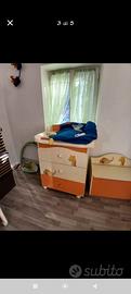 Cameretta bambini unisex con armadio, fasciatoio con cassettoni, panca, due lettini con sponde. Come nuova. Si trova a Mompantero già smontata. Ritiro a carico dell'acquirente. Disponibile da subito.