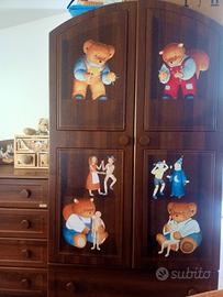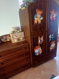 cameretta composta da baule, lettino, cassettiera e armadio a due ante in ottime condizioni