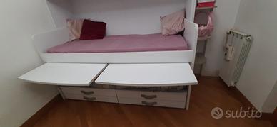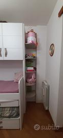 Vendo per cambio arredo cameretta mondo convenienza usata pochissimo. È composta da due letti singoli, un'armadiatura superiore, due ripiani/tavolino estraibile, sei cassetti ed una colonna/libreria laterale.