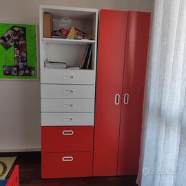 Vendo cameretta Ikea bambino/a usata per entrambi i figli (maschio e femmina). Vendiamo anche elementi separati. Armadi 110 euro a modulo (sono due moduli) lettini con doghe 35 euro l'uno (sono usati e senza materasso). Lampadario a forma di aereo 30 euro. Disponibile a trattare.