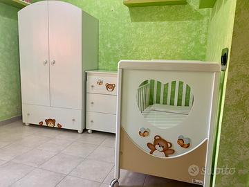 Vendo cameretta per bambino/bambina in ottimo stato, composta da armadio, cassettiera con bagnetto e lettino