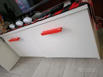 Vendo cameretta ottimo stato fatta su misura bianca e rossa. Qualche Maniglia da cambiare. Smontaggio e montaggio a carico del compratore inclusi materassi. Mis. 240*300m Mobile 180cm Compresa di scrivania e mobile tv