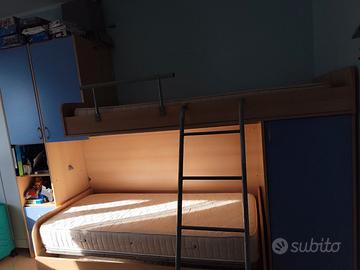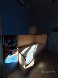 Vendo cameretta bimbo in buone condizioni con tre vani armadio, tre letti (uno nel cassettone) e scaletta.