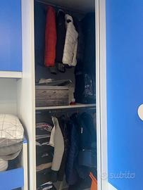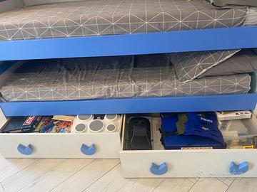 Cameretta con cabina armadio spaziosa 97x117, letto a castello , 1 armadio a 2 ripiani e appendiabiti, 4 cassetti e 2 cassettoni sotto il letto, 1 arandio piu piccolo laterale prof, 40,5 a larg, 30cm