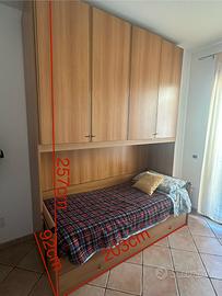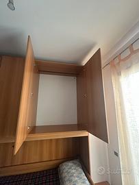 Vendo cameretta composta da letto a ponte con armadio e altro letto nel cassettone, scrivania e sedia. Il tutto è in buone condizioni e funzionale presenta qualche segno di usura. Se interessati nel prezzo sono compresi i materassi.