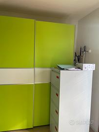 -armadio tre ante scorrevoli con ripiani e cassiettiera interna
