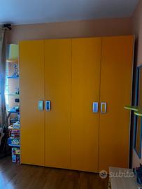 Vendesi bellissima e colorata cameretta Moretti Compact, composta da un letto singolo, doppia scrivania con libreria, armadio e doppio comodino