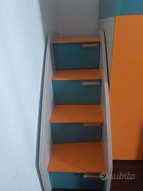 Cameretta con letto a soppalco ,tre armadi,scale a cassettoni e letto con cassetti. Prezzo trattabile