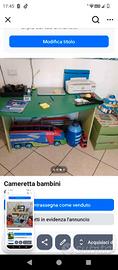 vendo cameretta con soppalco completa di tutto in ottime condizioni lunghezza 3 50 cm, profondità dà un lato 95 cm e dall' altro lato 50 cm altezza 2 55 cm