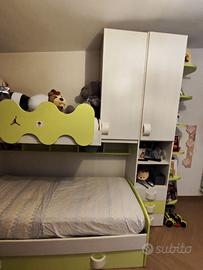 Cameretta completa tenuta in ottime condizioni, come nuova, così come si vede nelle foto tranne pupazzi, libri, giocattoli, lampadario ecc, che non c'entrano con l'arredo della stanzetta.