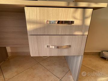 Vendo cameretta come da foto, sono 3 letti di cui uno estraibile con rete nuova pagata 90€ Armadiatura molto capiente Perfetta in tutto, unico difetto parte inferiore destra come in foto Viene ceduta con i tre materassi. Perfetta in tutto Misure cameretta 290 cm lunghezza 245 cm altezza Ritiro a carico dell’acquirente