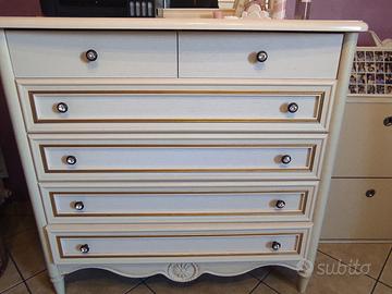 Cameretta armadio ponte in legno color avorio a 3 letti, compresa di scrivania e cassettiera. Ritiro e smontaggio a carico dell' acquirente. Misura armadio: 3.60 X 0,90