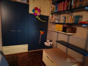 Cameretta nuova, completa ,con letto singolo con struttura in acciaio satinato e doghe in legno,comodino ampio con ruote,armadio ,scrivania ,libreria con mobile con ante e ruote,ottima fattura,nessuna scheggiatura