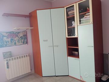 cameretta in legno di ciliegio.. composta da armadio, scrivania con cassettiera incorporata, comò,2 comodini