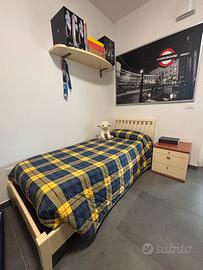 Cameretta compresa di armadio, letto con rete, comodino e mensola in buone condizioni. I moduli dell’armadio alti 2 metri sono invertibili in base alle proprie esigenze.