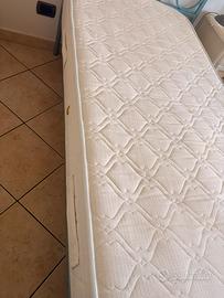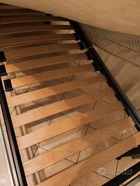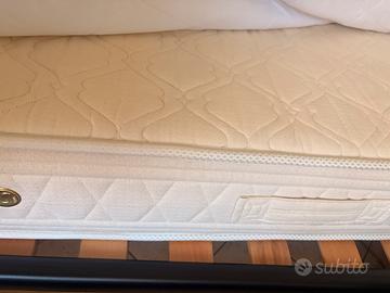 Vendo letti con mensole in legno 135cm x 30cm l’una con gancio a muro in ferro. I due lettini invece sono in ferro battuto temperato e hanno doghe in legno; un materasso è nuovo mai utilizzato, l’altro ha tre anni e mezzo ed è in ottime condizioni senza macchie o segni di usura.