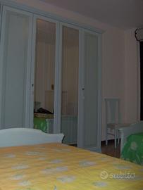 Ante: 4 ante in legno massello. Le due ante centrali sono provviste di altrettanti specchi aventi dimensioni 34x193 cm, mentre le due ante laterali hanno una bellissima decorazione a cornice, tipica della ditta produttrice.